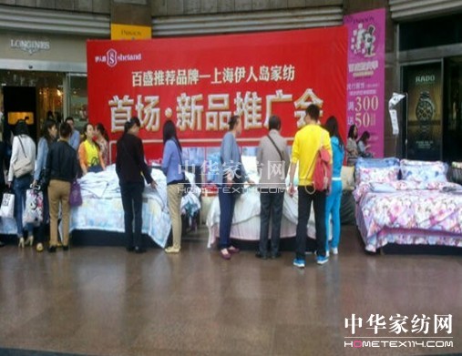 近日,在重庆百盛商厦相关部门的大力支持下,伊人岛家纺成功举办了为期三天的新品推广会。会场展现的伊人岛家纺款款新产品,无不透露出伊人岛家纺时刻追求高端生活品位与最新时尚潮流的理念!现场展示的新产品,以其新颖多样的款式,精美优良的面料,吸引了不少消费者驻足选购!